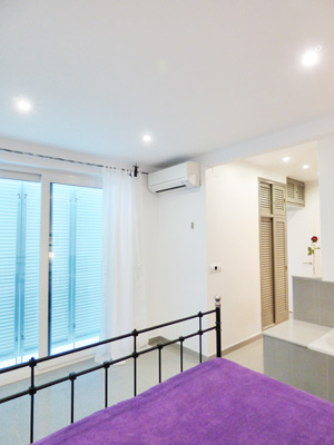 Klimaanlage, SAT-TV und offenem Bad mit Badewanne und Dusche. Terrasse.