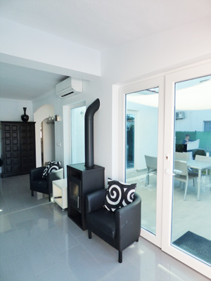 Klimaanlage, SAT-TV und offenem Bad mit Badewanne und Dusche. Terrasse.